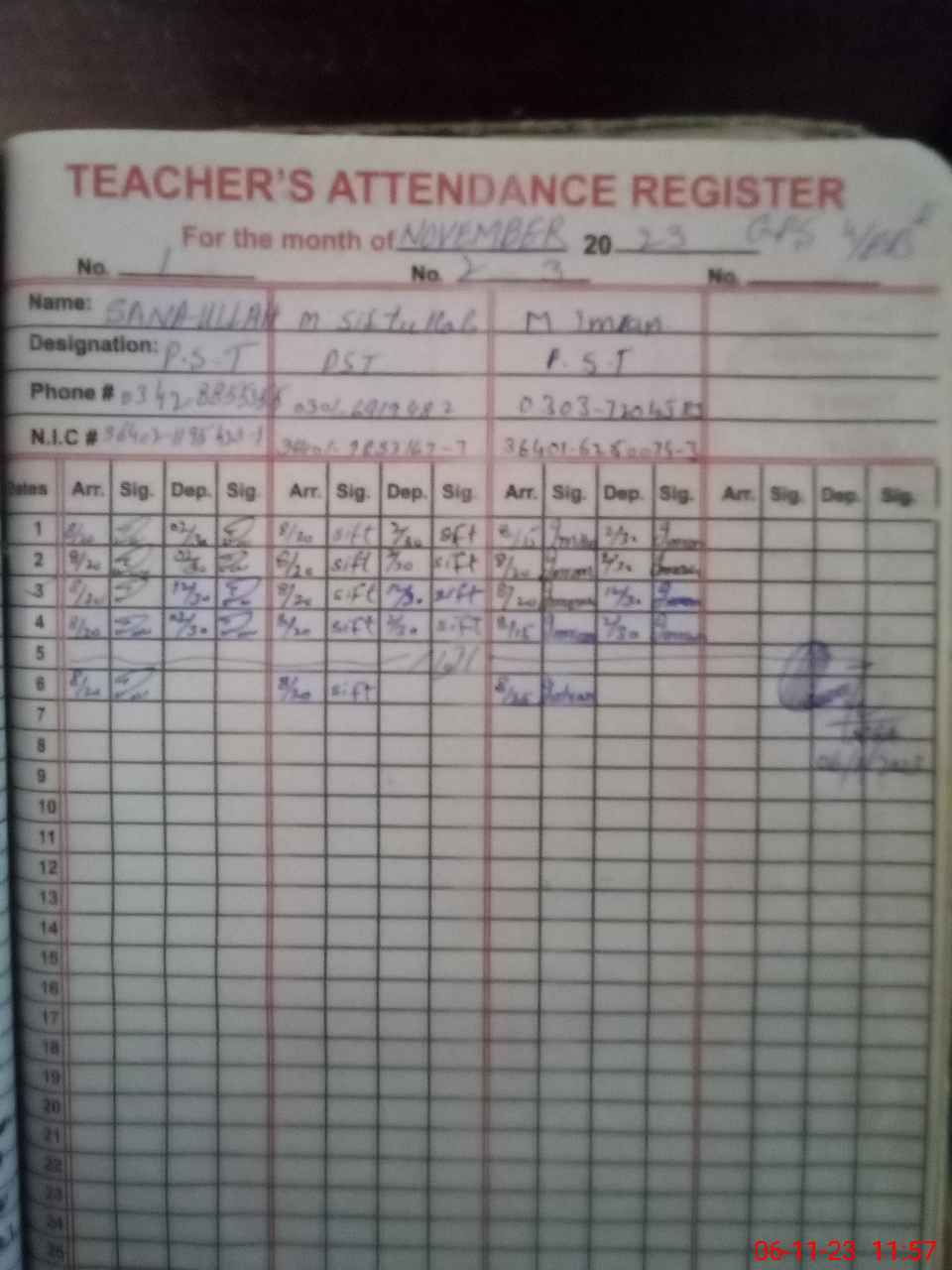 | Name: SA**** UL**** Designation: (School Headmaster's/Headmistress's) PST Phone/Cell Number: 03**** |