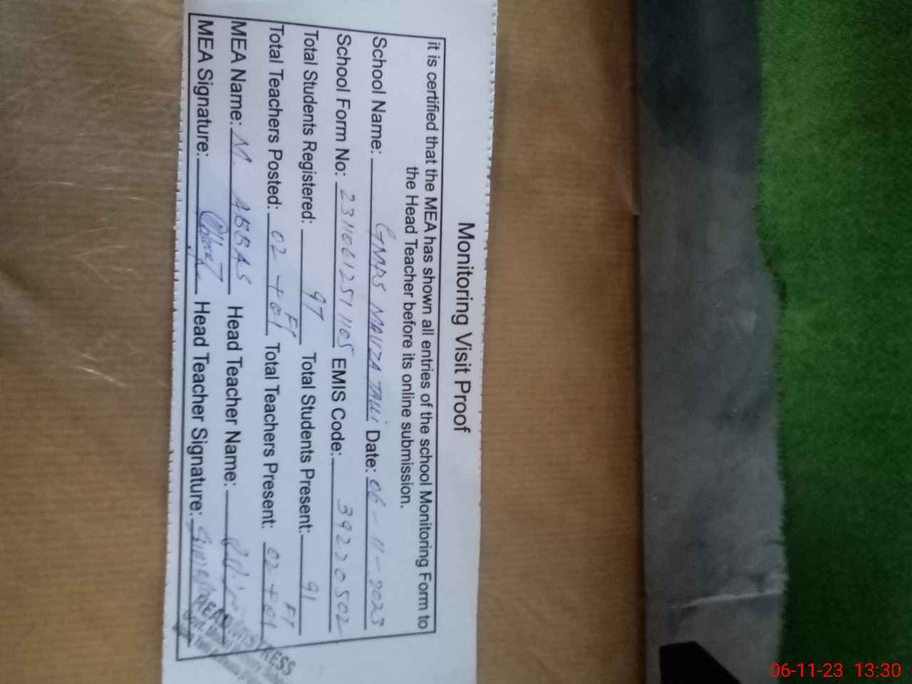 | Certified that this School was Inspected by the Undersigned MEA/DMO Today and the Information Stated Above is as Per Record. | |||||