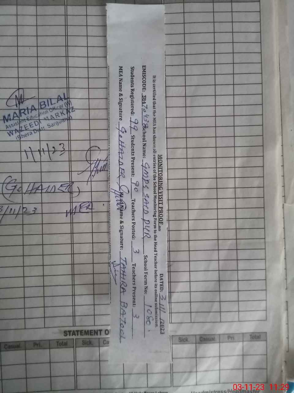 | Monitoring Date: 03-11-2023 | Start Time: 03-11-2023 11:07 AM | End Time: 03-11-2023 11:41 AM | Name of MEA: GH**** HA**** | |
