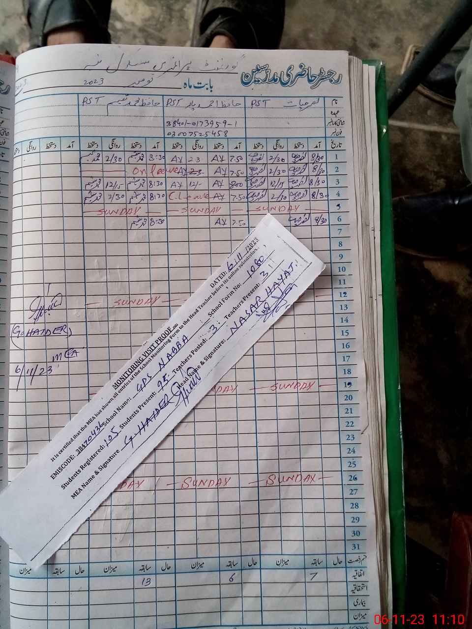 | Name: NA**** HA**** Designation: (School Headmaster's/Headmistress's) PST Phone/Cell Number: 03**** |
