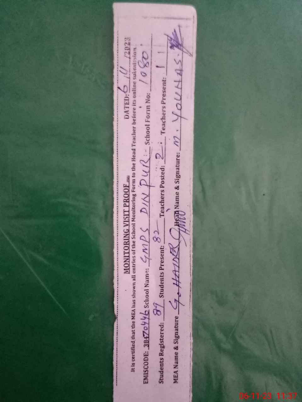 | EMIS Code: 38470446 | Name of School: GMPS DIN PUR | |||