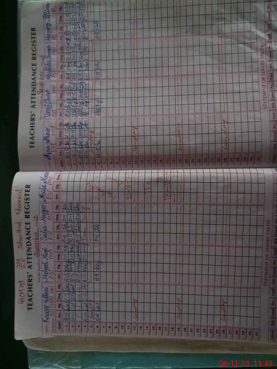 | Monitoring Date: 06-11-2023 | Start Time: 06-11-2023 11:37 AM | End Time: 06-11-2023 12:02 PM | Name of MEA: AB**** RA**** | |