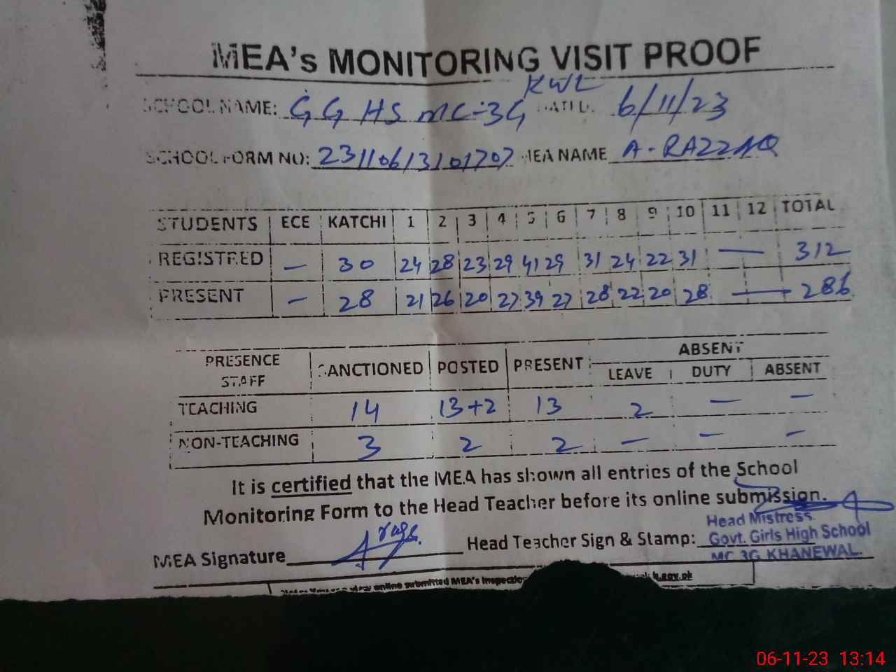 | EMIS Code: 36420365 | Name of School: GGHS MC 3-G, KHANEWAL | |||