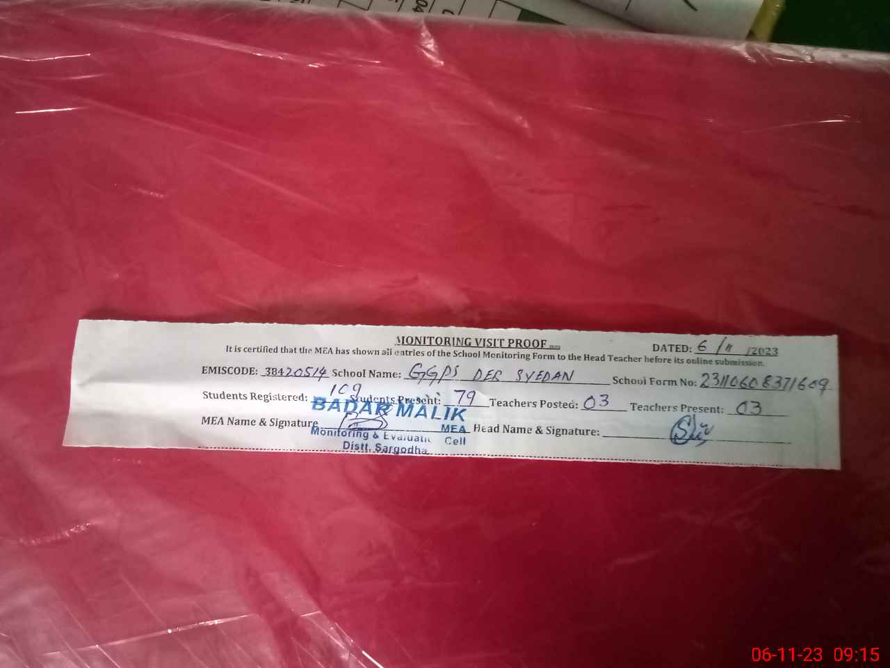 | EMIS Code: 38420514 | Name of School: GGPS DERA SYEDAN | |||