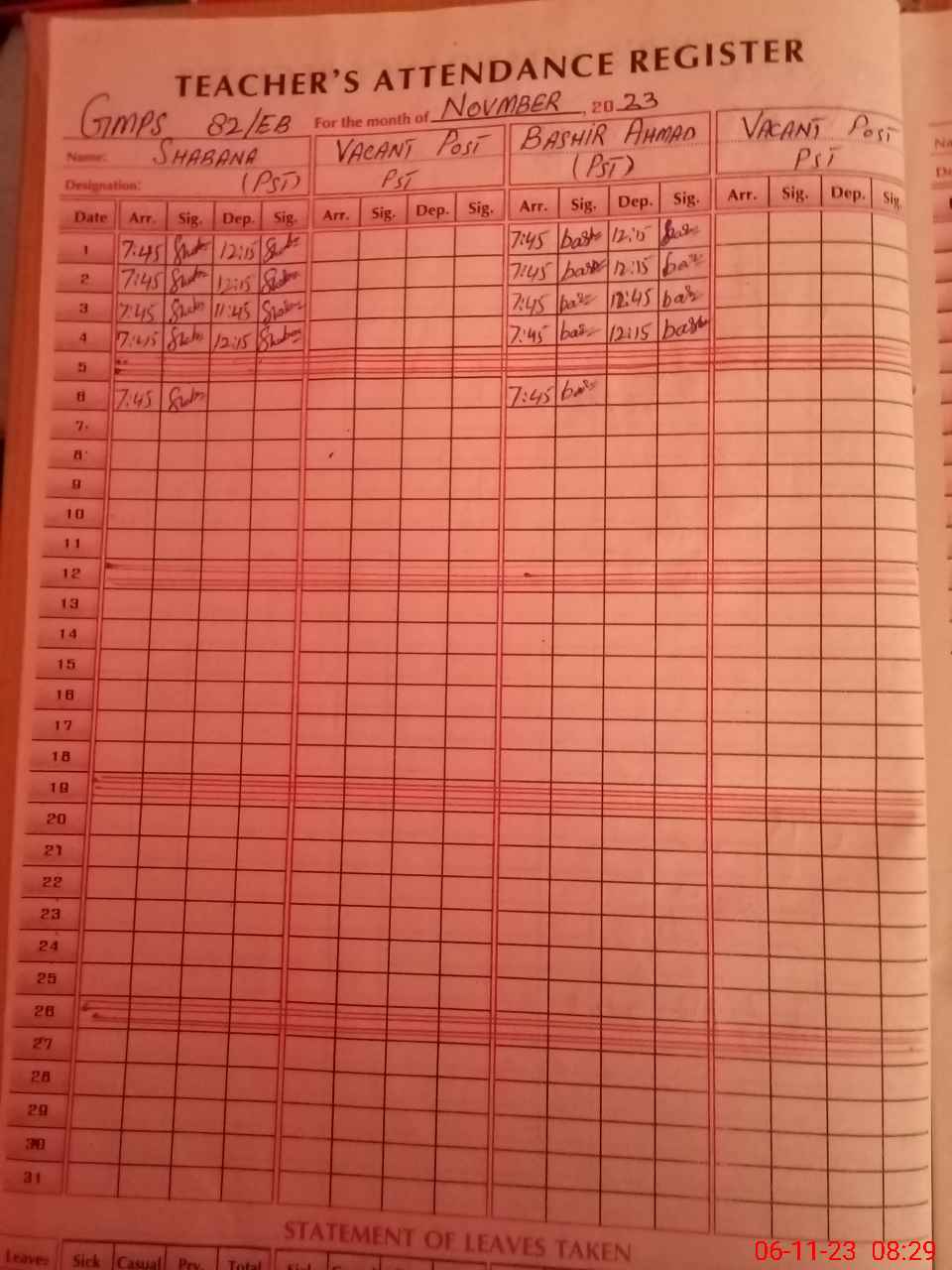 | Name: Sh**** Designation: (School Headmaster's/Headmistress's) PST Phone/Cell Number: 03**** |