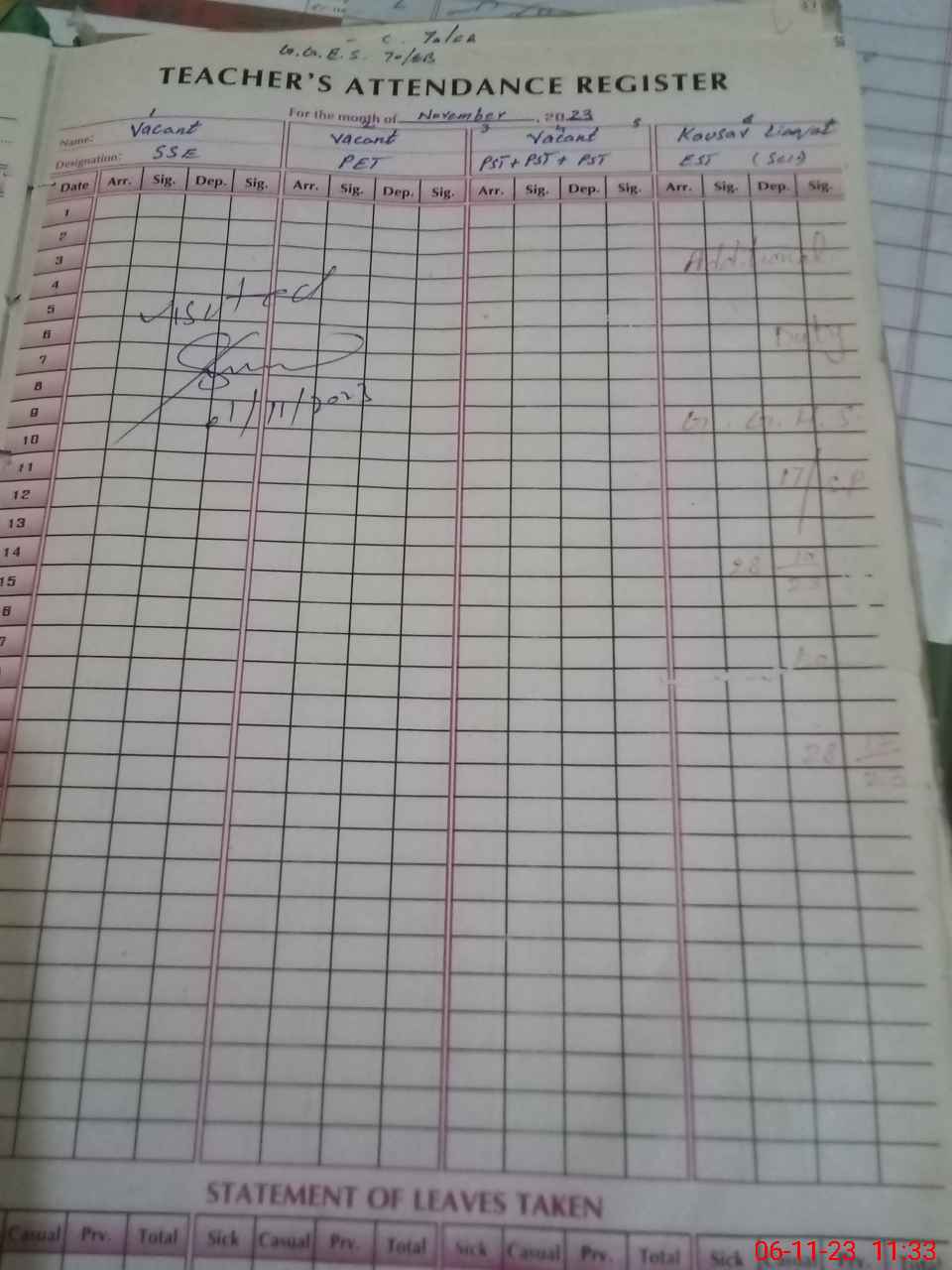 | Name: HU**** GI**** Designation: (School Headmaster's/Headmistress's) EST G Phone/Cell Number: 03**** |