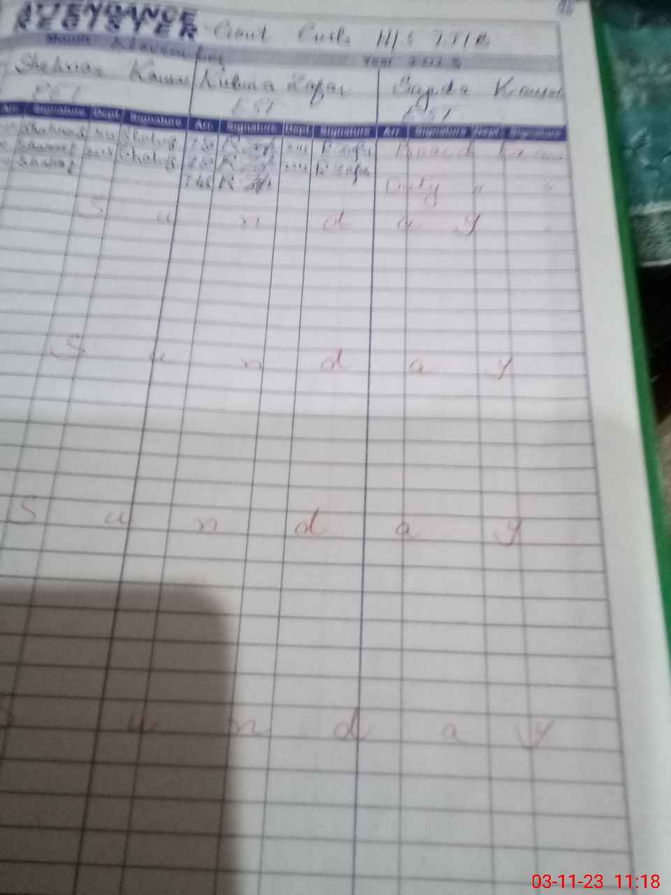 | 33**** | Ma**** Sa**** | 4 | 2 | 0 | 0 | 0 | 0 | 0 | 0 | 0 | 0 | 0 | Absent (Un-Authorized) |