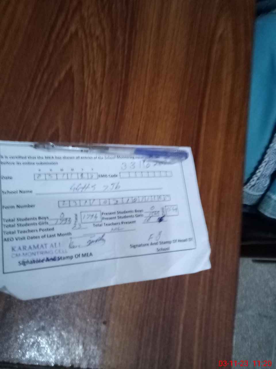 | Attendance Register | Head Teacher | MEA with School | Visit Proof |