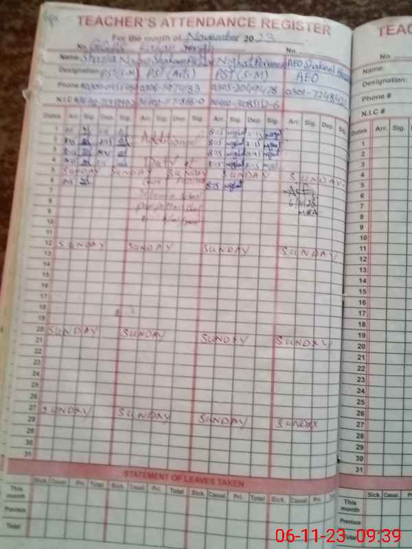 | Name: SH**** NA**** Designation: (School Headmaster's/Headmistress's) PST Phone/Cell Number: 03**** |
