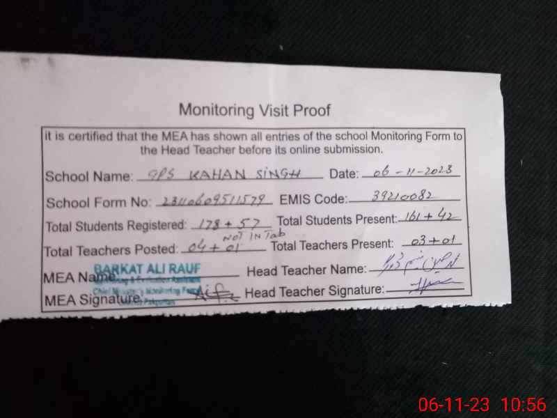 | EMIS Code: 39210082 | Name of School: GPS KAHAN SINGH P.O BLYLE GANJ | |||