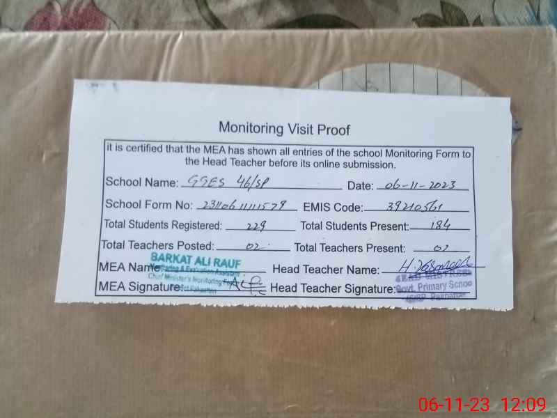 | EMIS Code: 39210561 | Name of School: GGES 46/SP | |||