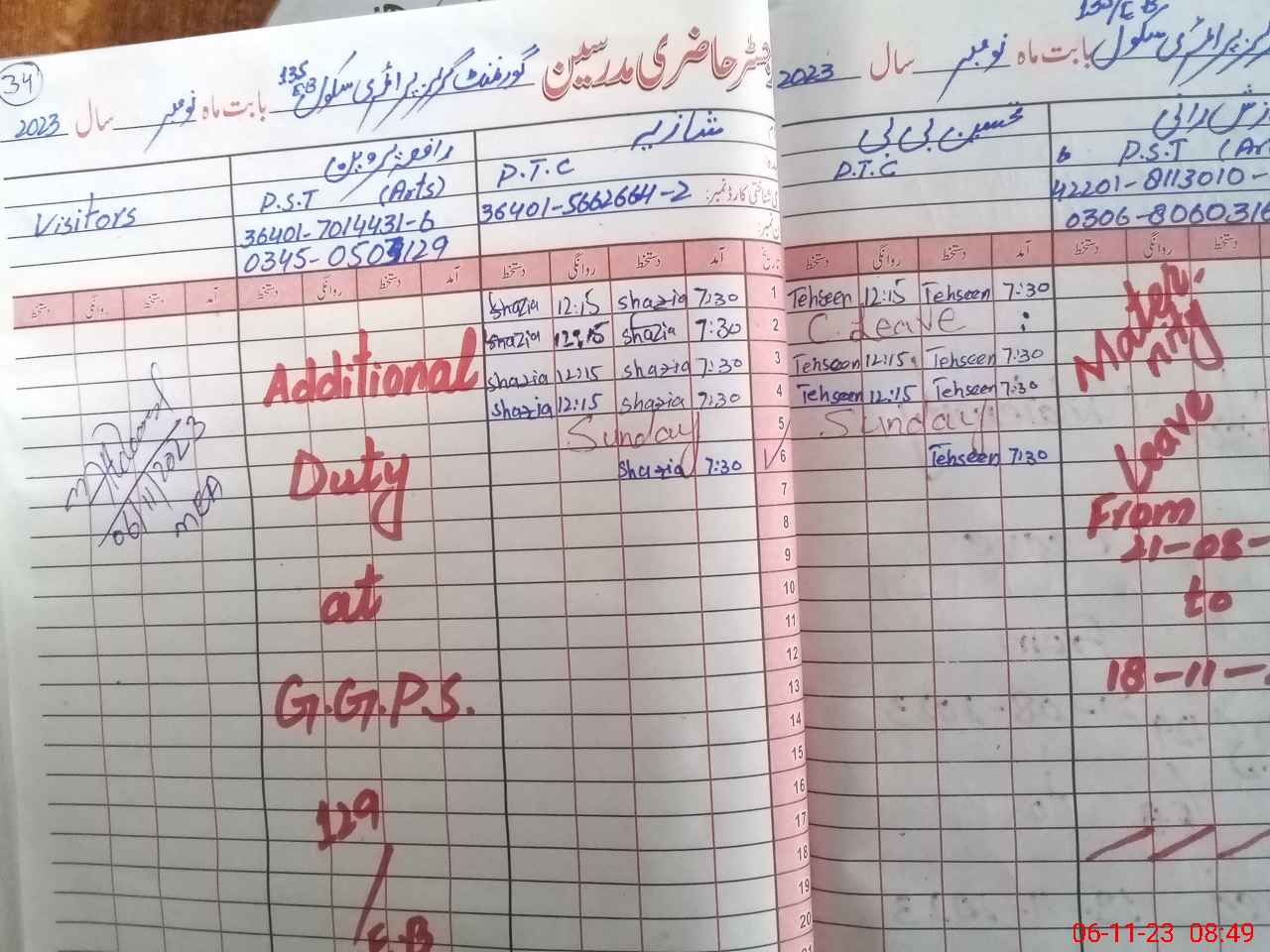 | Name: NA**** RA**** Designation: (School Headmaster's/Headmistress's) PST Phone/Cell Number: 03**** |