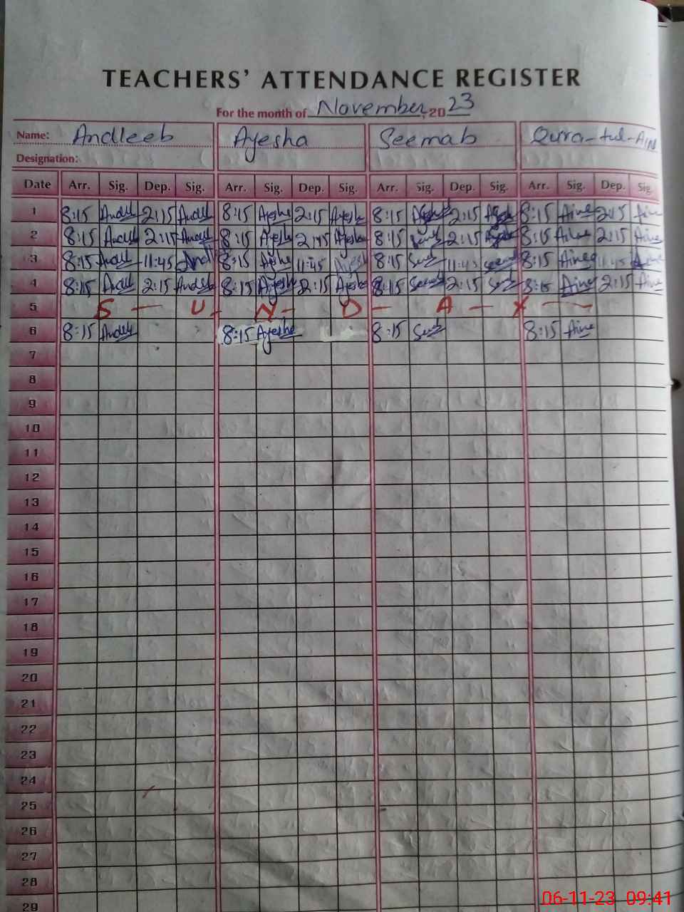 | Monitoring Date: 06-11-2023 | Start Time: 06-11-2023 09:14 AM | End Time: 06-11-2023 09:45 AM | Name of MEA: Qa**** Za**** | |