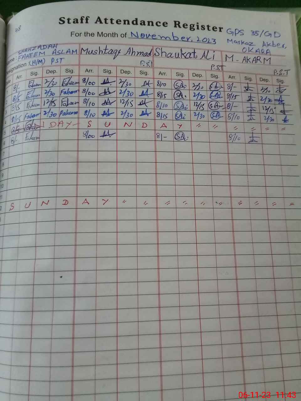 | Remarks (Use Separate Page if Required): Ms Maria Habib attached to DEO office wef 06 Sep 2023 | |||||