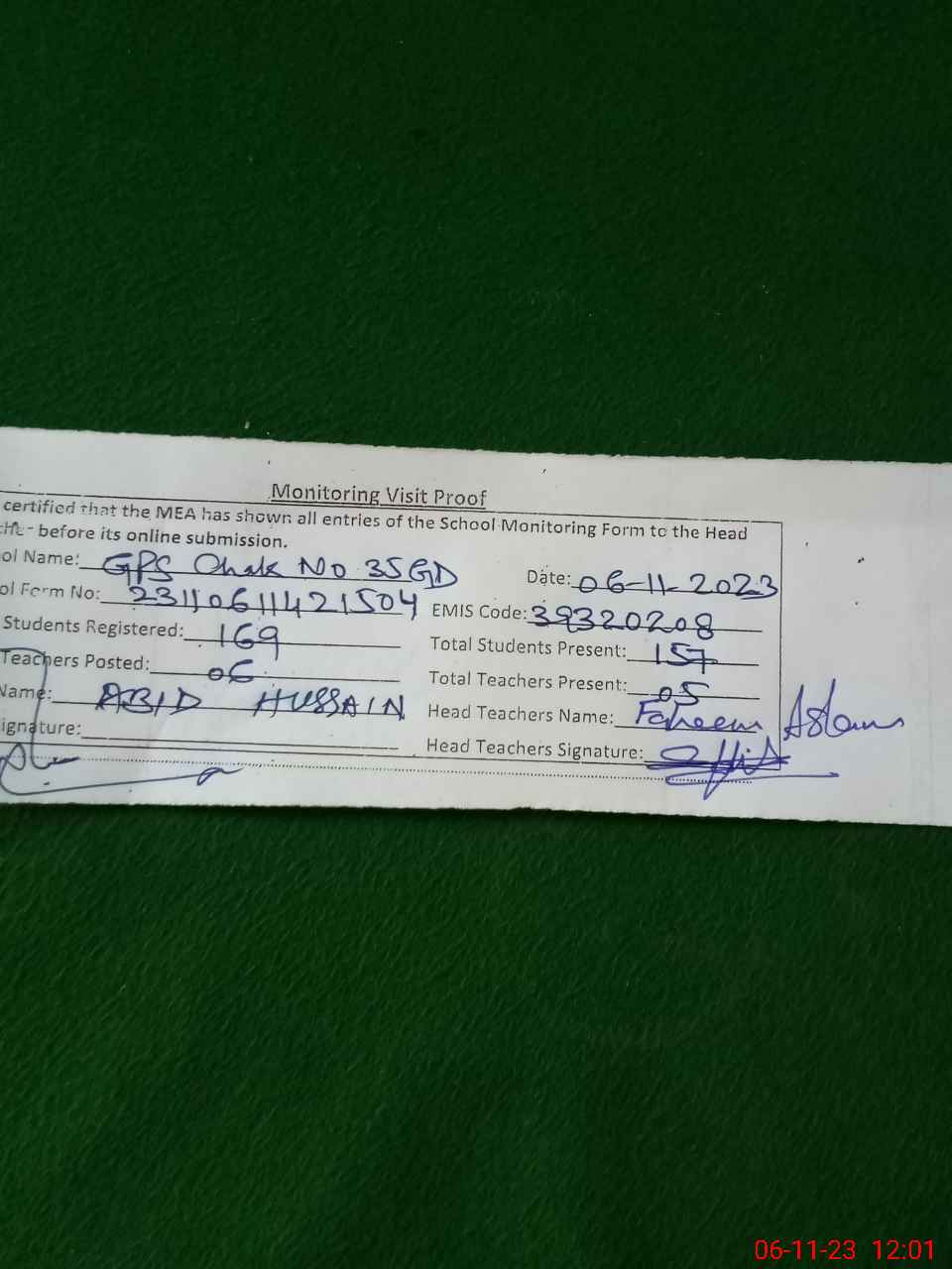 | EMIS Code: 39320208 | Name of School: GPS CHAK 35/G.D | |||