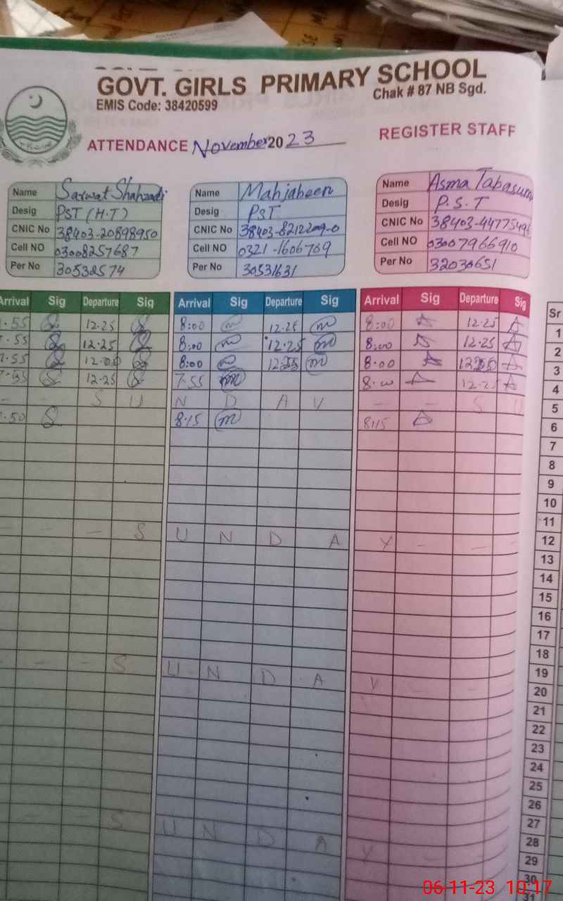 | EMIS Code: 38420599 | Name of School: GGPS CHAK NO.87 NB BIG SARGODHA | |||