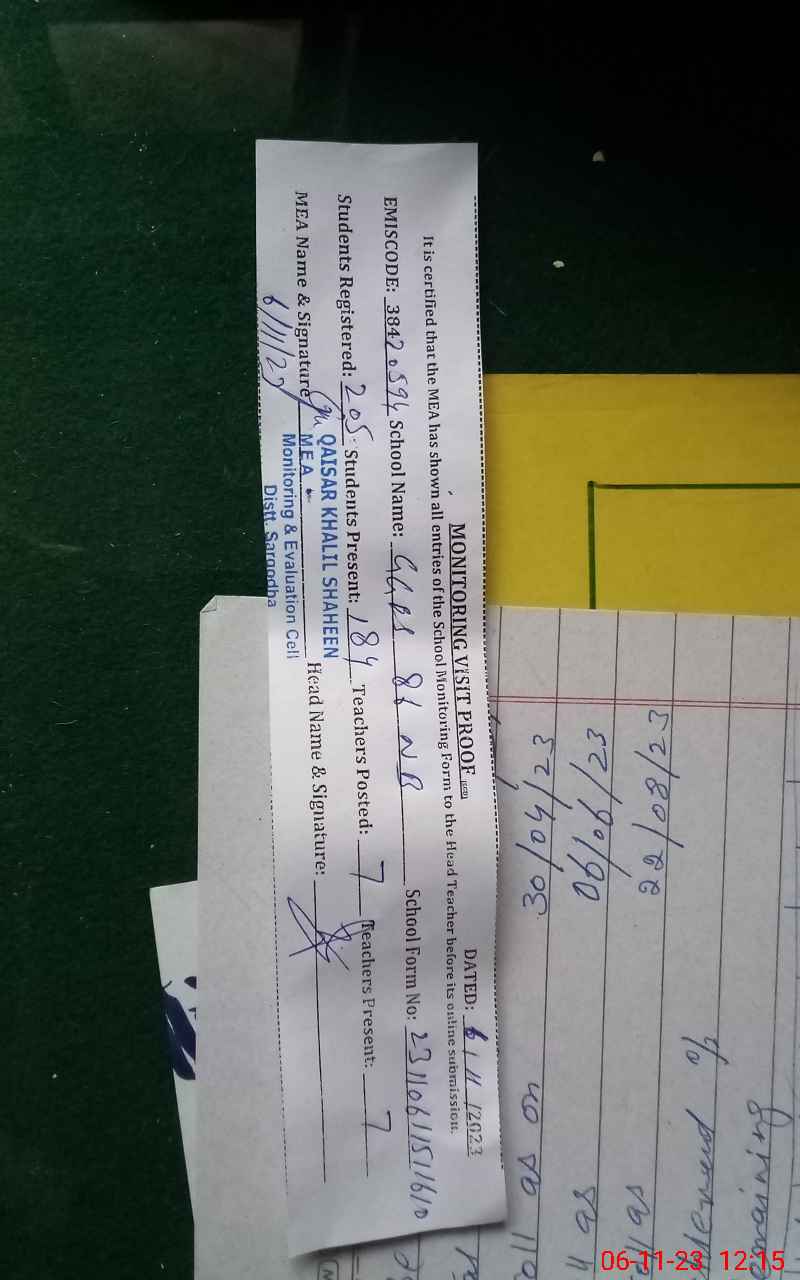 | Certified that this School was Inspected by the Undersigned MEA/DMO Today and the Information Stated Above is as Per Record. | |||||