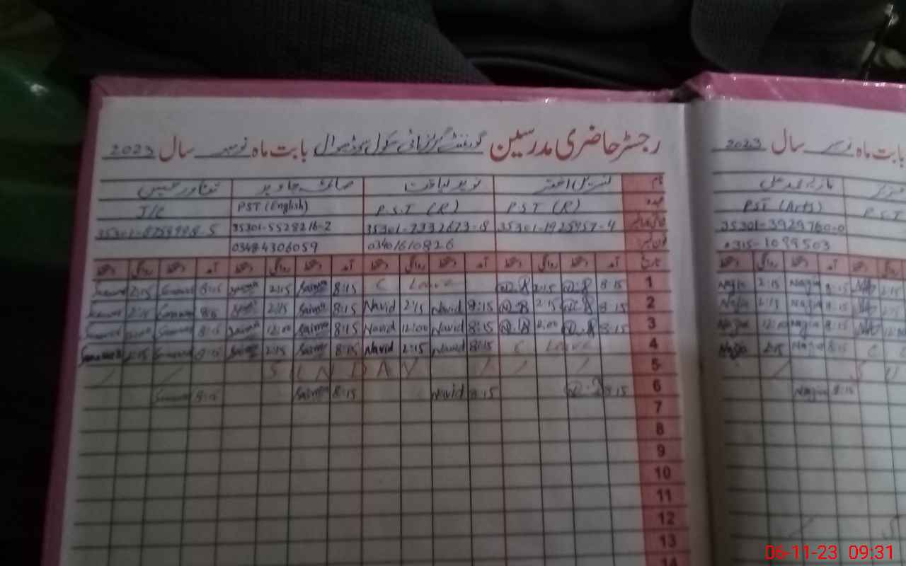 | Name: Za**** unNi**** Designation: (School Headmaster's/Headmistress's) HEADMISTRESS Phone/Cell Number: 03**** |