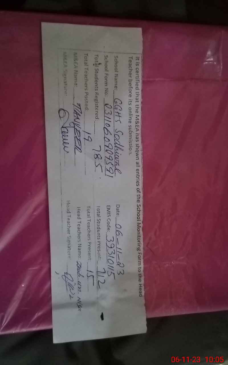 | EMIS Code: 39310115 | Name of School: GGHS SODHIWAL | |||