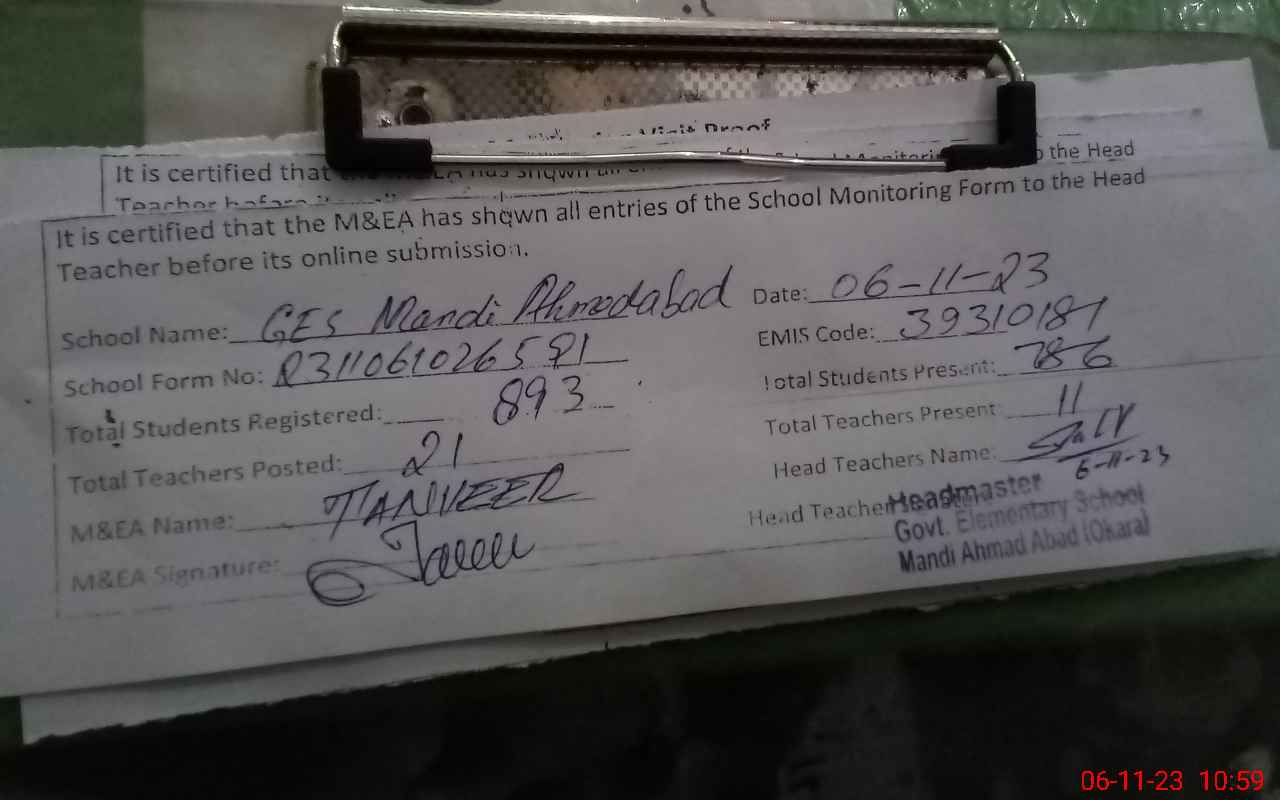 | EMIS Code: 39310181 | Name of School: GES MANDI AHMAD ABAD | |||