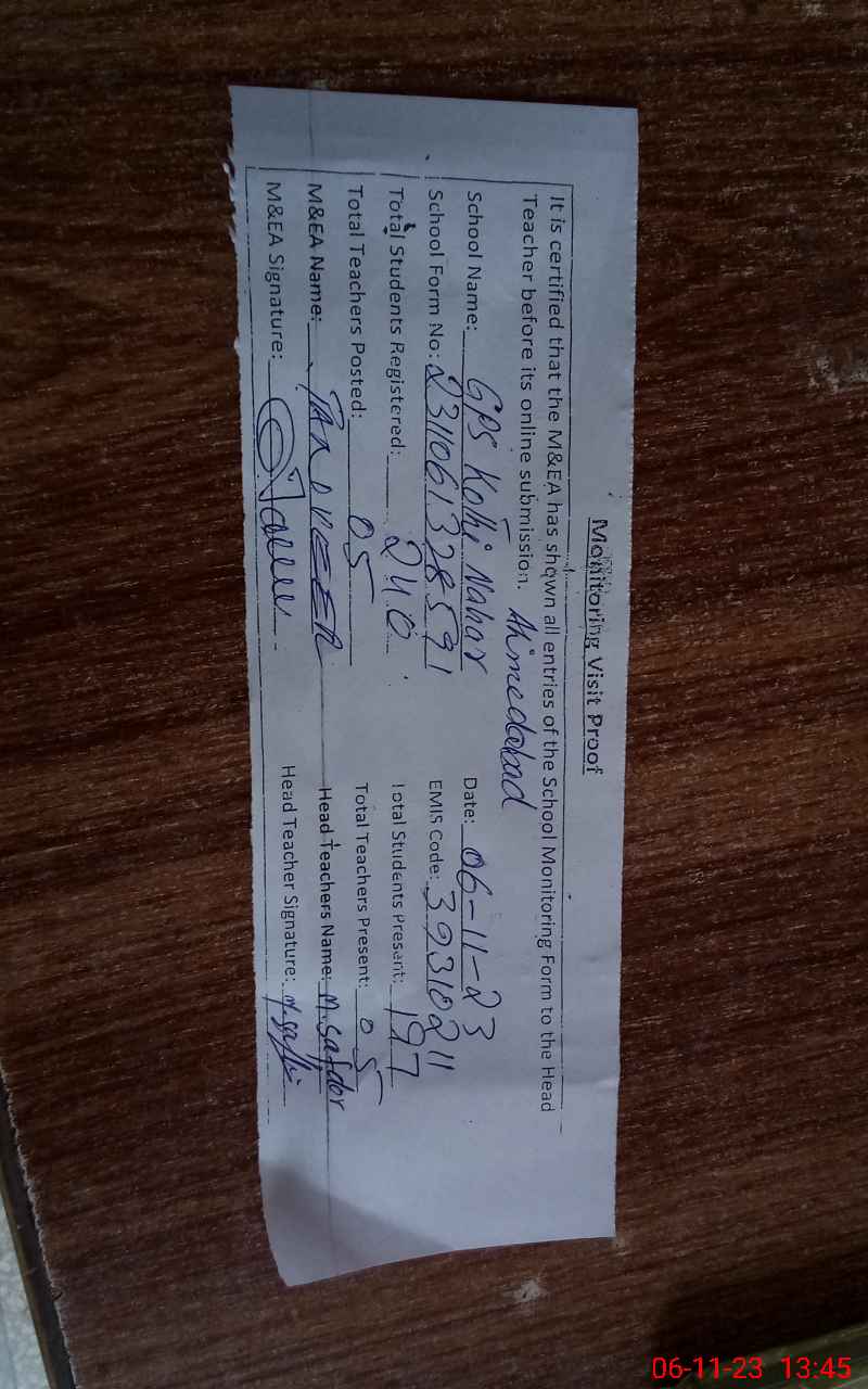 | Attendance Register | Head Teacher | MEA with School | Visit Proof |