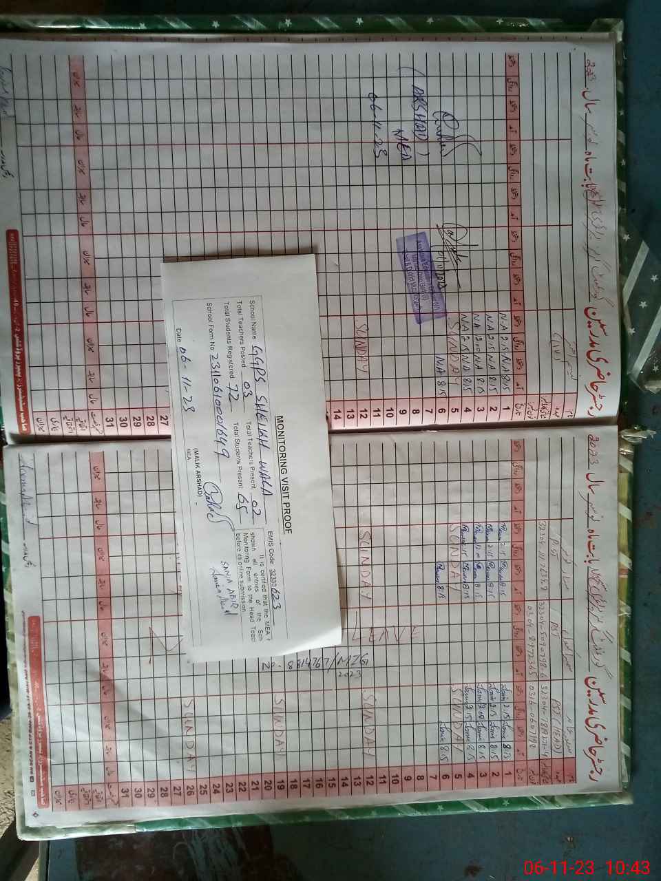 | Attendance Register | Head Teacher | MEA with School | Visit Proof |