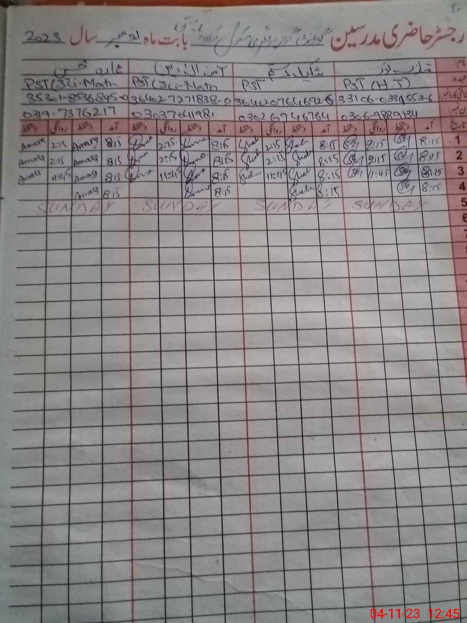 | Name: Sh**** No**** Designation: (School Headmaster's/Headmistress's) PST Phone/Cell Number: 03**** |