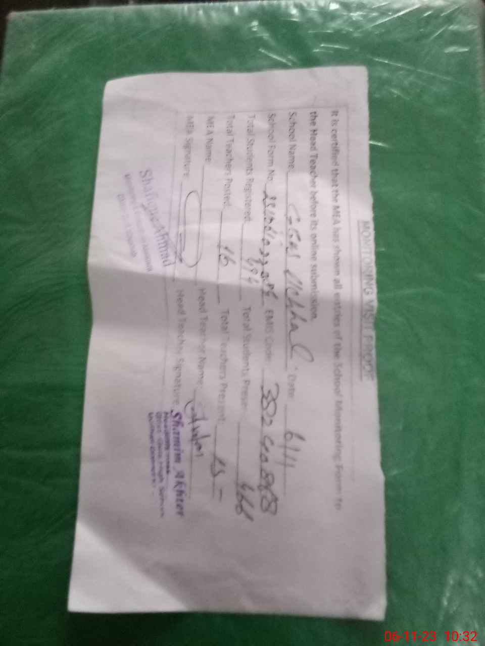 | Certified that this School was Inspected by the Undersigned MEA/DMO Today and the Information Stated Above is as Per Record. | |||||
