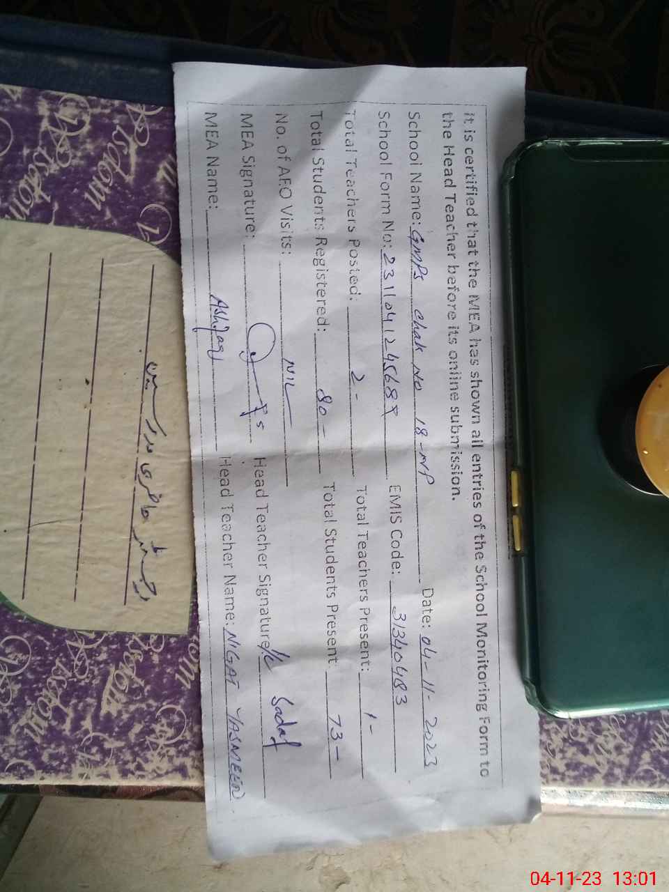 | EMIS Code: 31340483 | Name of School: GMPS 18 NP | |||