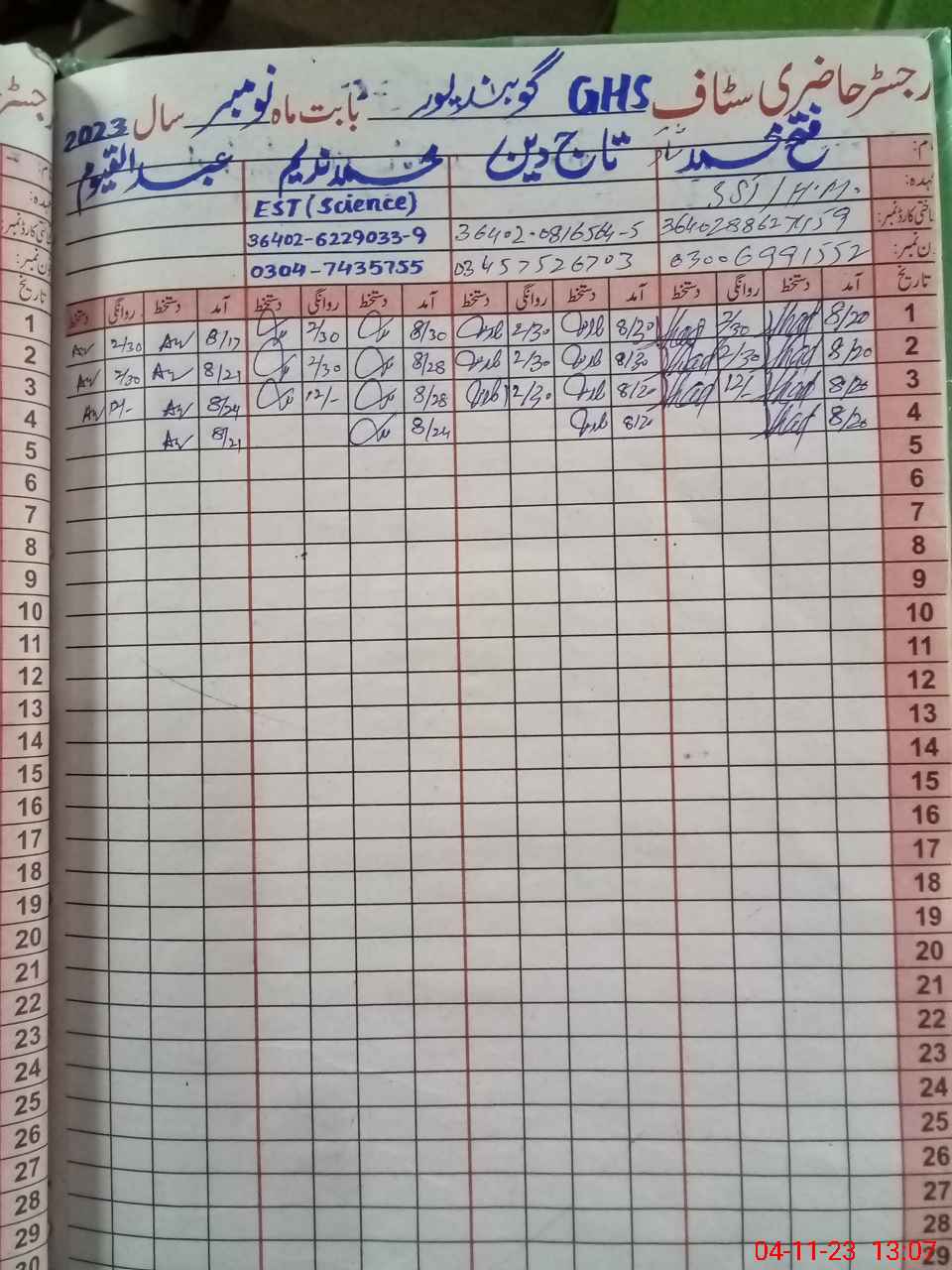 | Name: FA**** MU**** SH**** Designation: (School Headmaster's/Headmistress's) S.S.T.(GENERAL) Phone/Cell Number: 03**** |