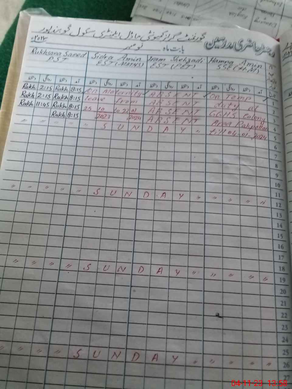 | 36**** | Ir**** Sh**** | 1 | 0 | 0 | 31 | 0 | 0 | 0 | 0 | 0 | 0 | Absent (Un-Authorized) | |
