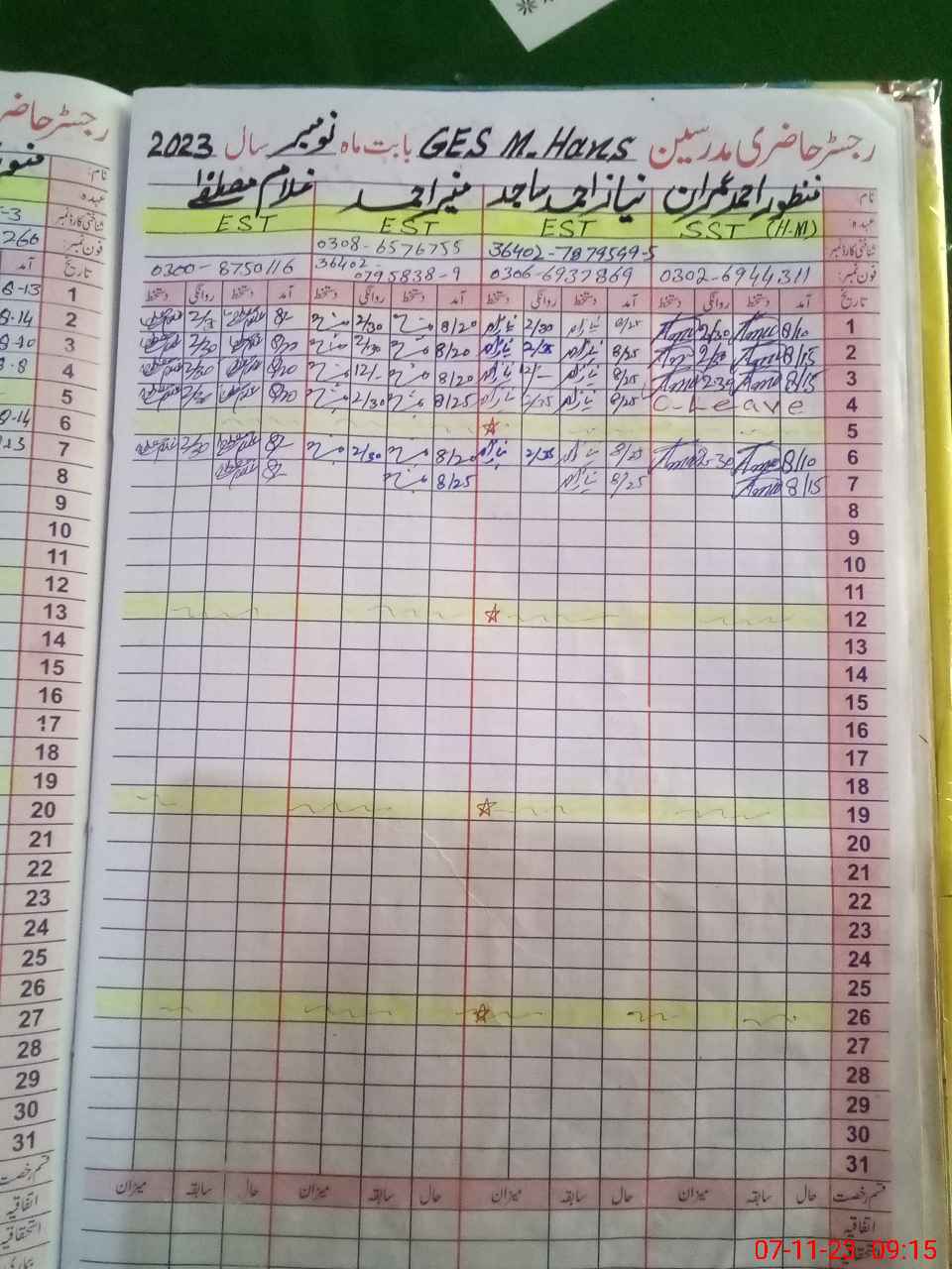 | CNIC | Full Name | Designation | R/C | Absence During Last Calender Month |