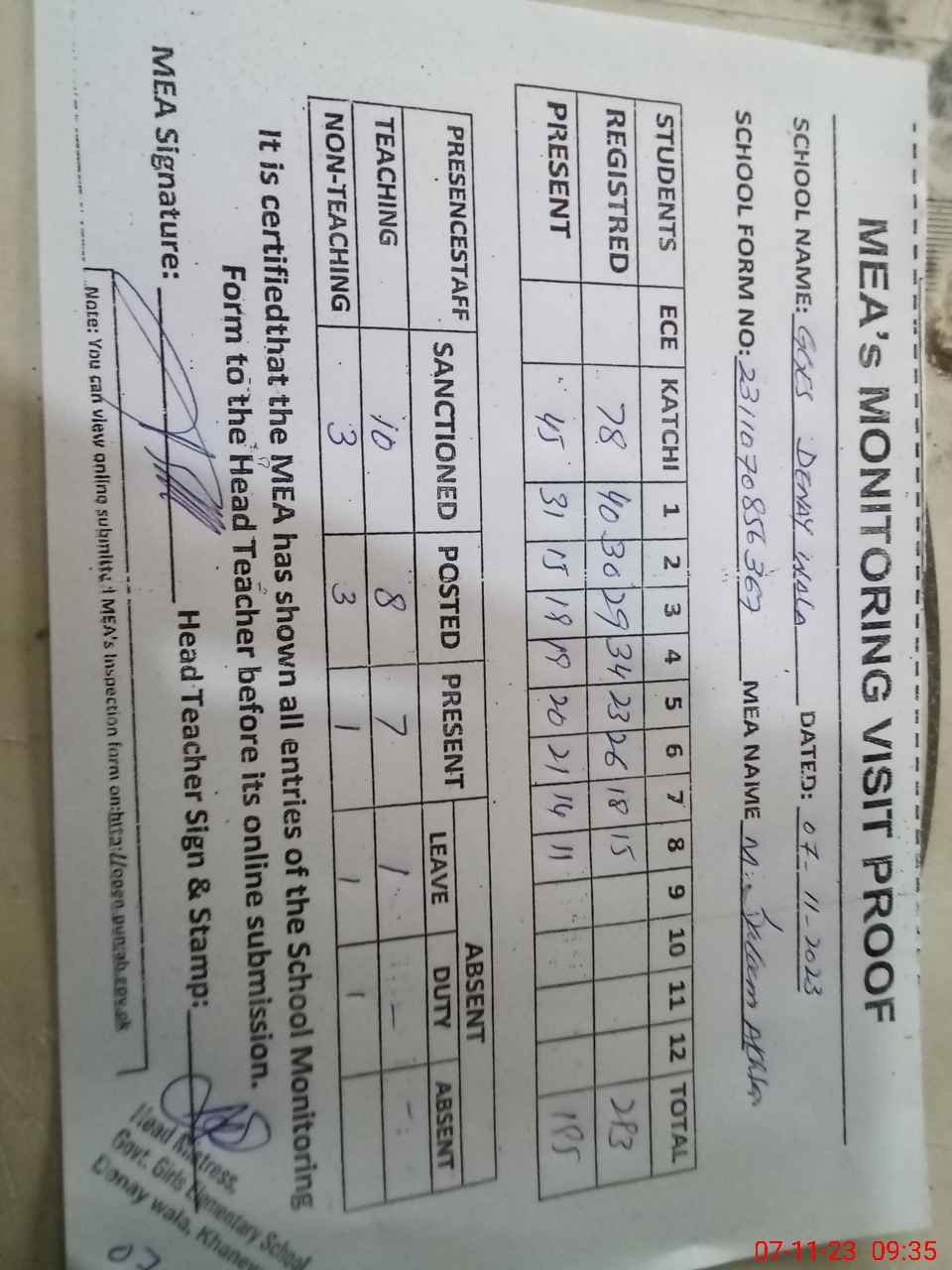 | EMIS Code: 36420105 | Name of School: GGES DENAY WALA, KHANEWAL | |||