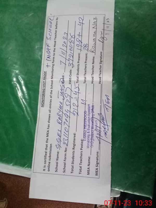 | Certified that this School was Inspected by the Undersigned MEA/DMO Today and the Information Stated Above is as Per Record. | |||||