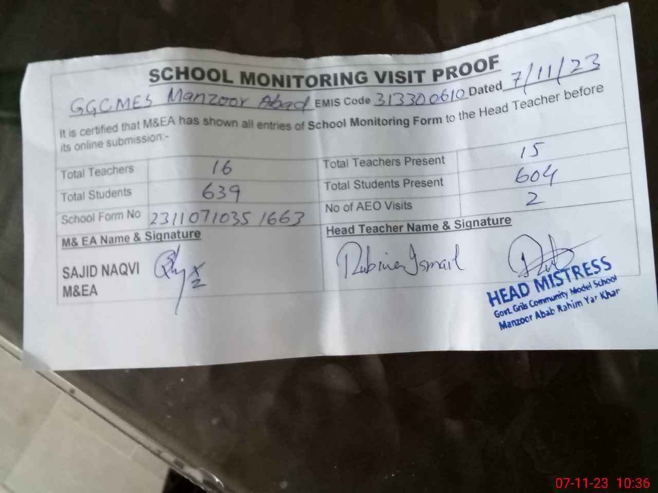| EMIS Code: 31330610 | Name of School: GGCMES MANZOOR ABAD (BINDOOR) | |||