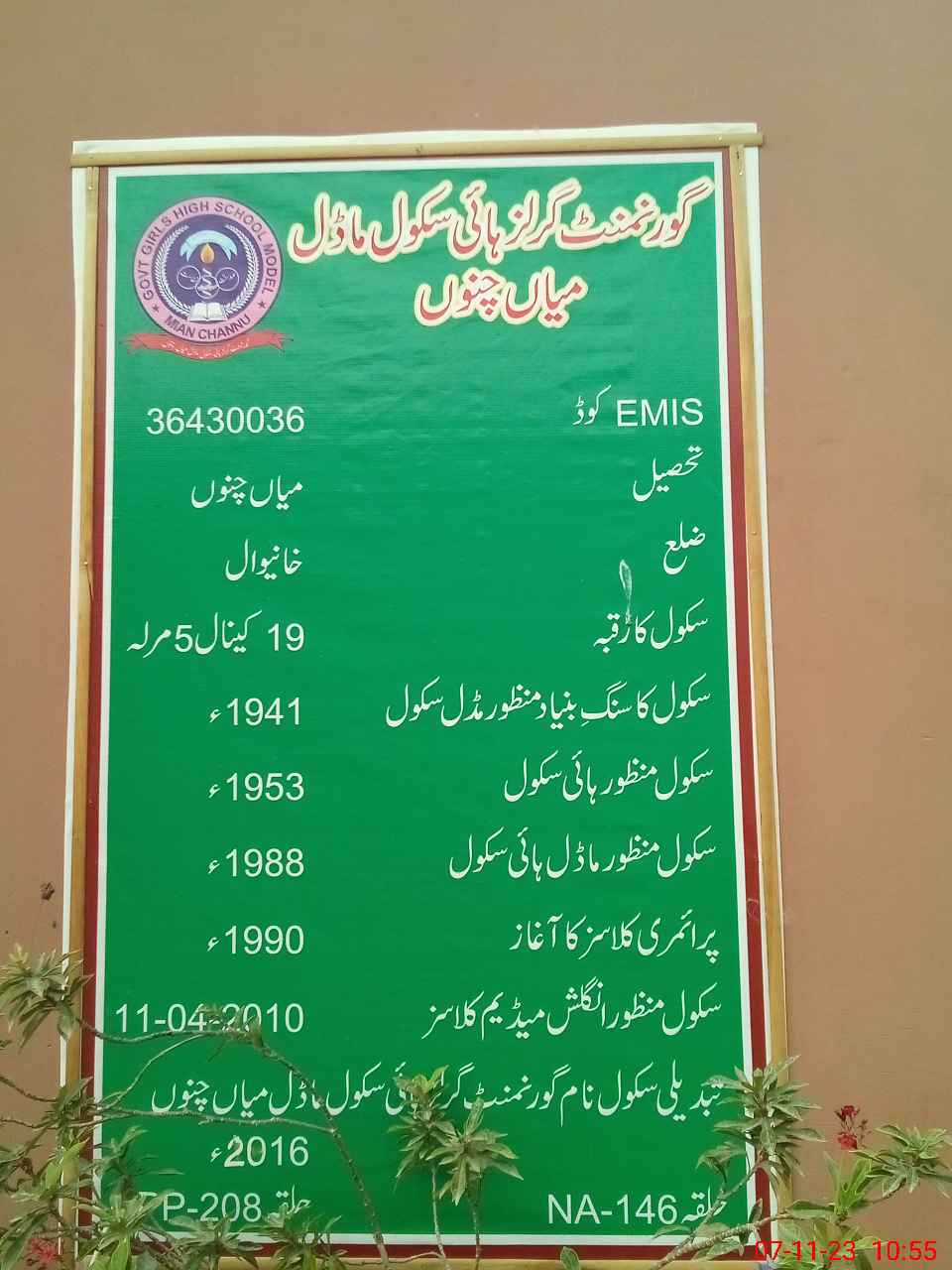 | EMIS Code: 36430036 | Name of School: GGHS MODEL MIAN CHANNU | |||