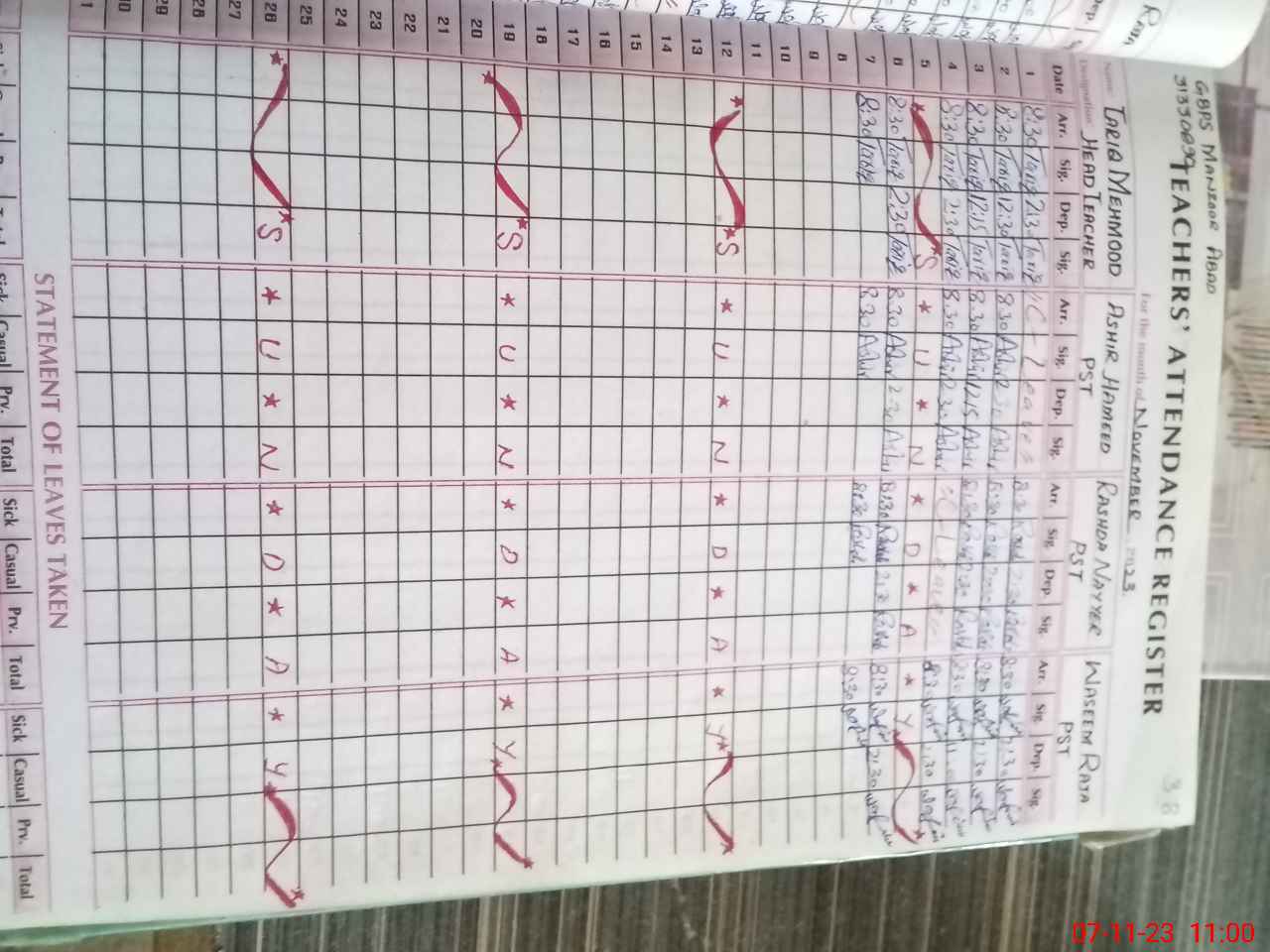 | CNIC | Full Name | Designation | R/C | Absence During Last Calender Month |
