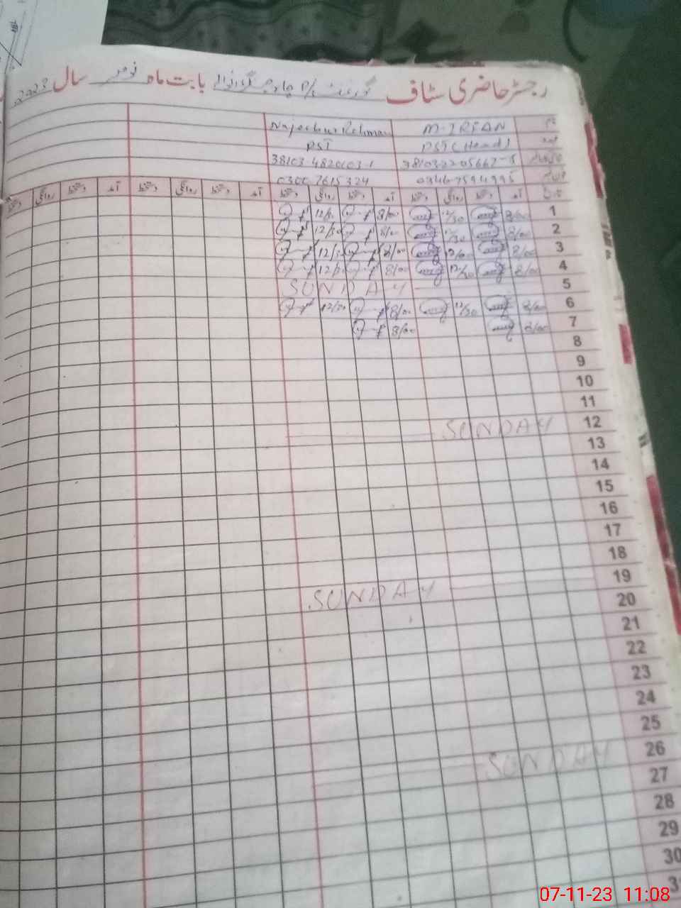 | Name: MU**** IR**** Designation: (School Headmaster's/Headmistress's) ESE Phone/Cell Number: 03**** |