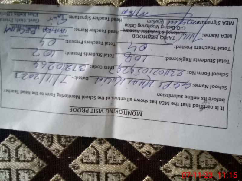 | Attendance Register | Head Teacher | MEA with School | Visit Proof |
