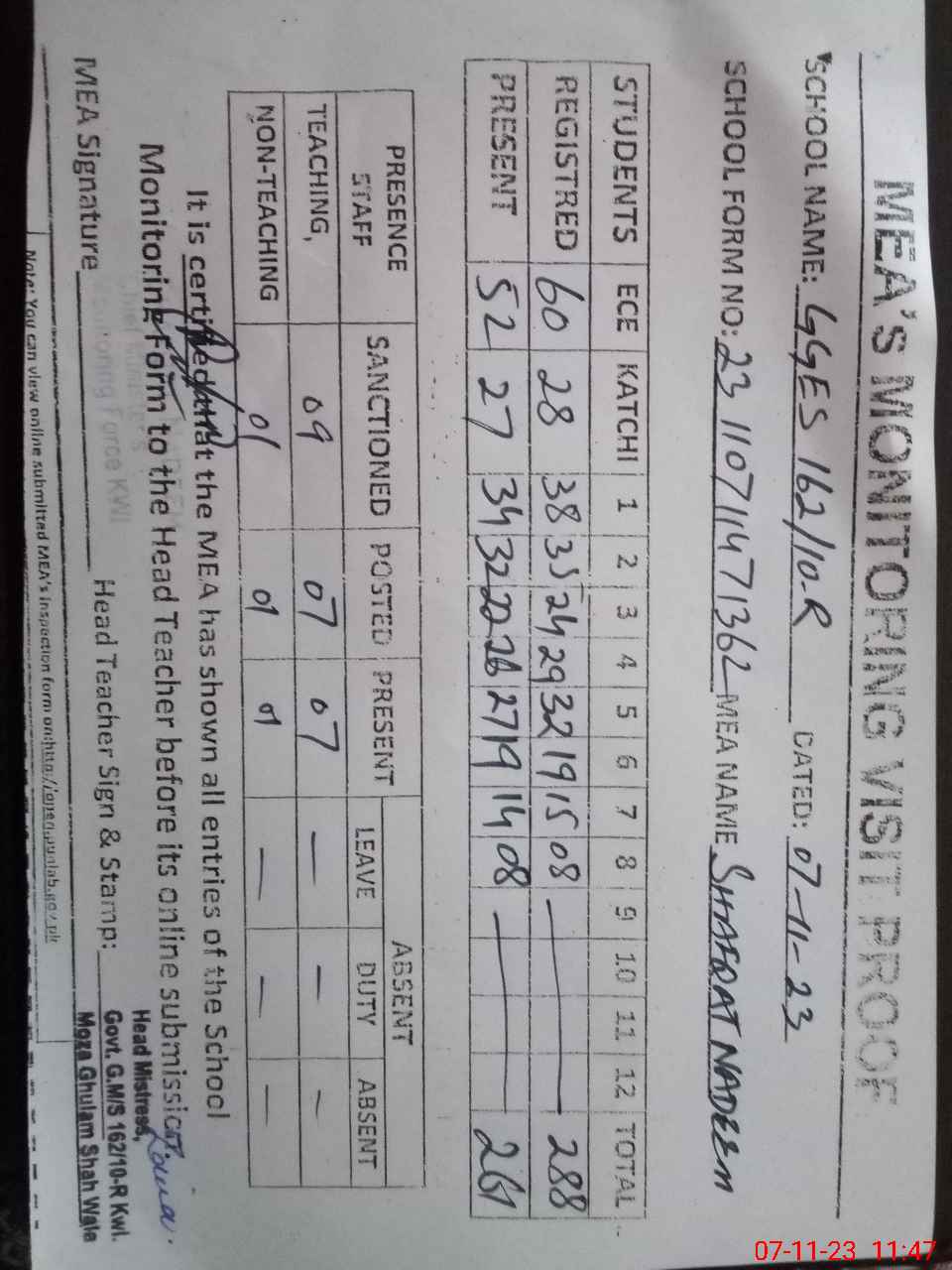 | EMIS Code: 36420434 | Name of School: GGES 162/10-R, KHANEWAL | |||