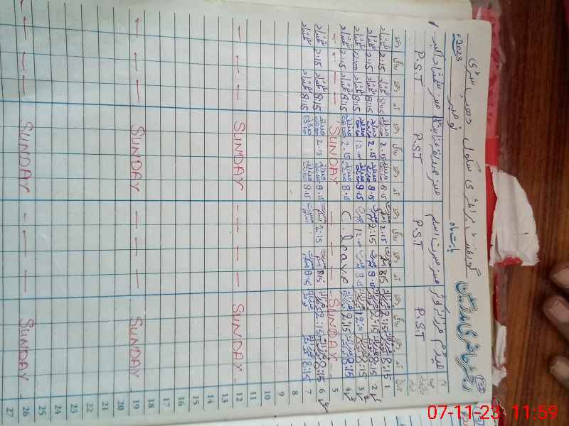 | CNIC | Full Name | Designation | R/C | Absence During Last Calender Month |