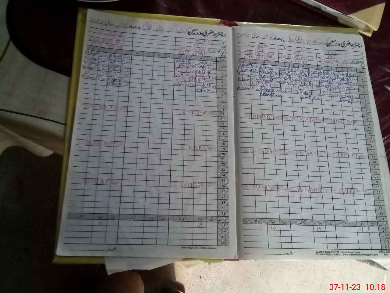 | CNIC | Full Name | Designation | R/C | Absence During Last Calender Month |