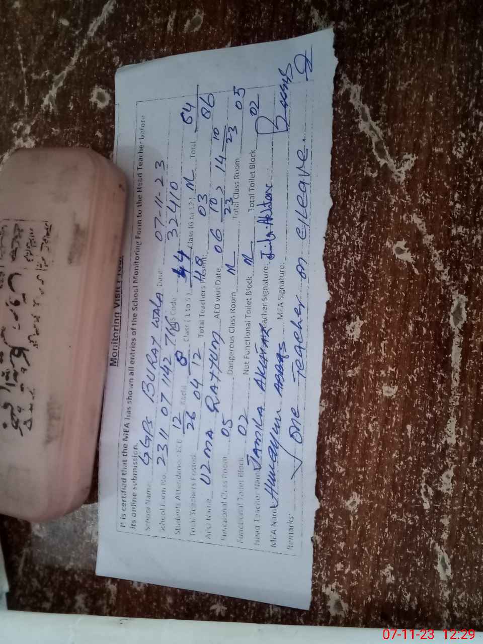 | Attendance Register | Head Teacher | MEA with School | Visit Proof |