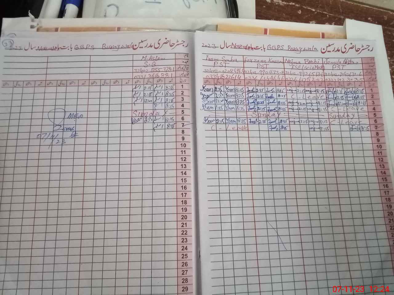 | CNIC | Full Name | Designation | R/C | Absence During Last Calender Month |