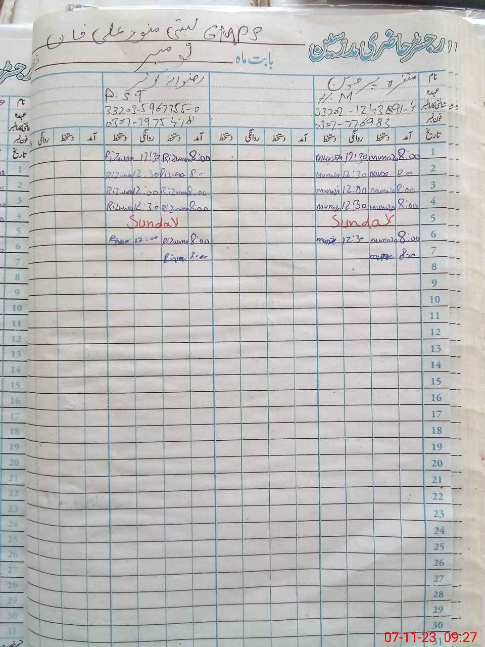 | Name: MU**** PE**** Designation: (School Headmaster's/Headmistress's) PST Phone/Cell Number: 03**** |