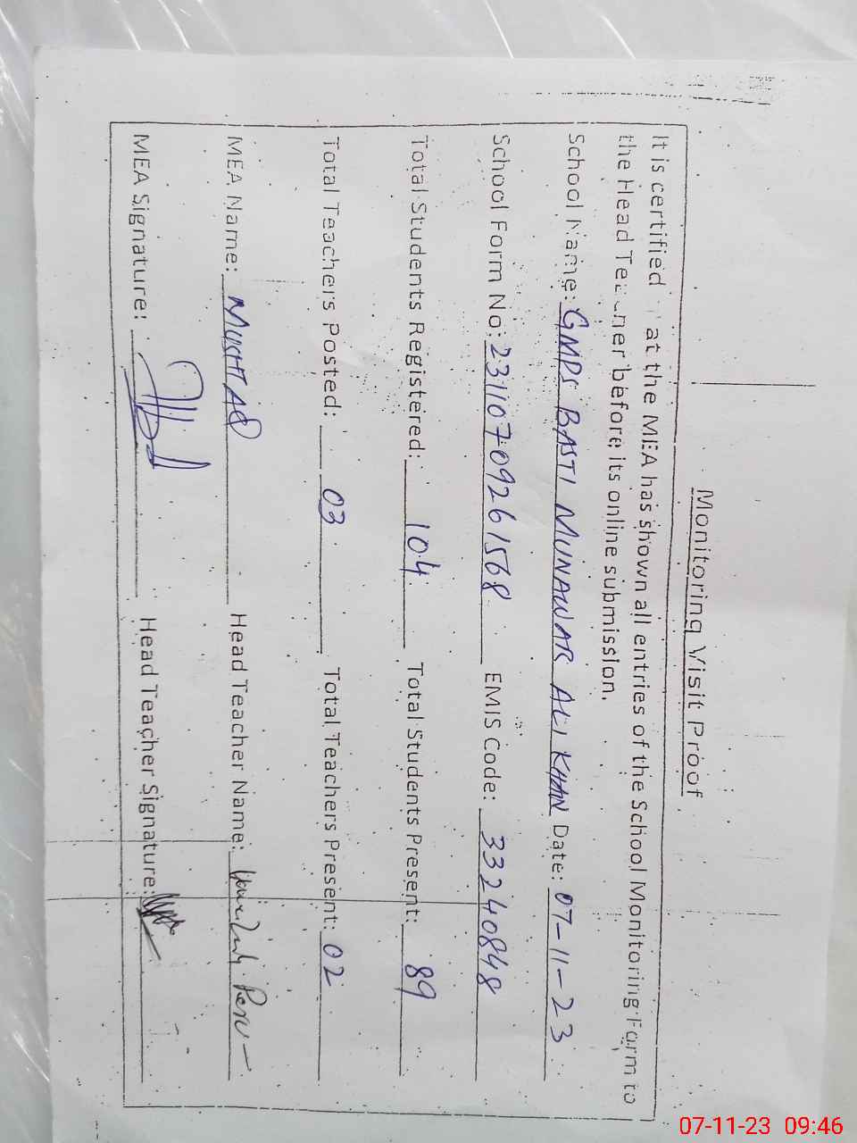 | EMIS Code: 33240848 | Name of School: GMPS BASTI MUNAWAR ALI KHAN | |||