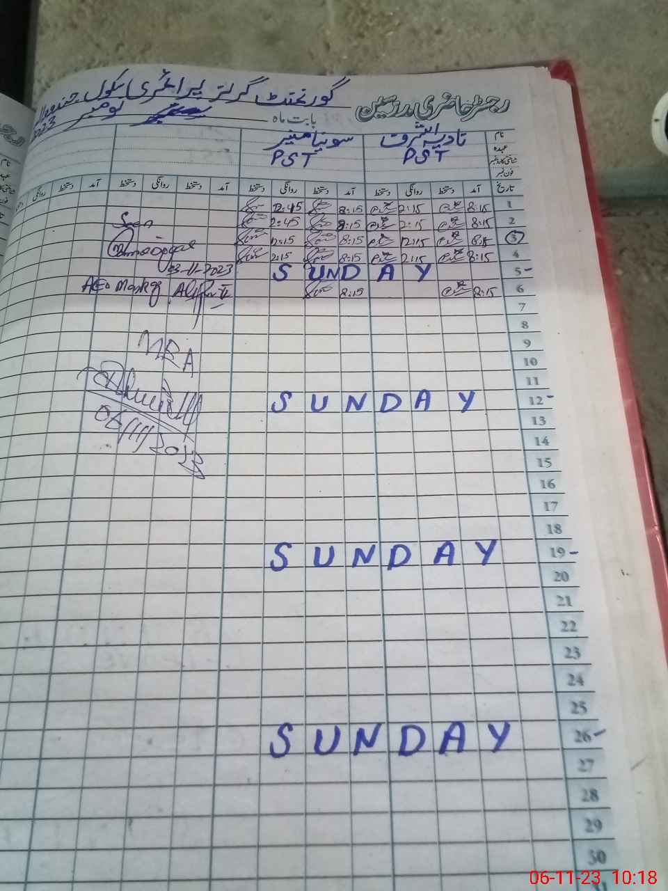 | Name: NA**** AS**** Designation: (School Headmaster's/Headmistress's) PST Phone/Cell Number: 03**** |
