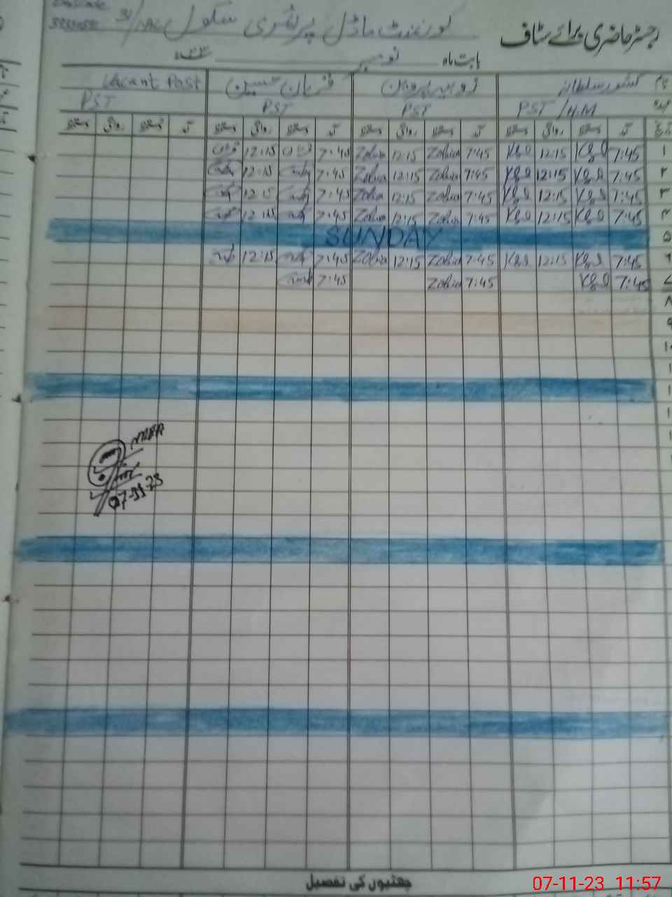 | CNIC | Full Name | Designation | R/C | Absence During Last Calender Month |