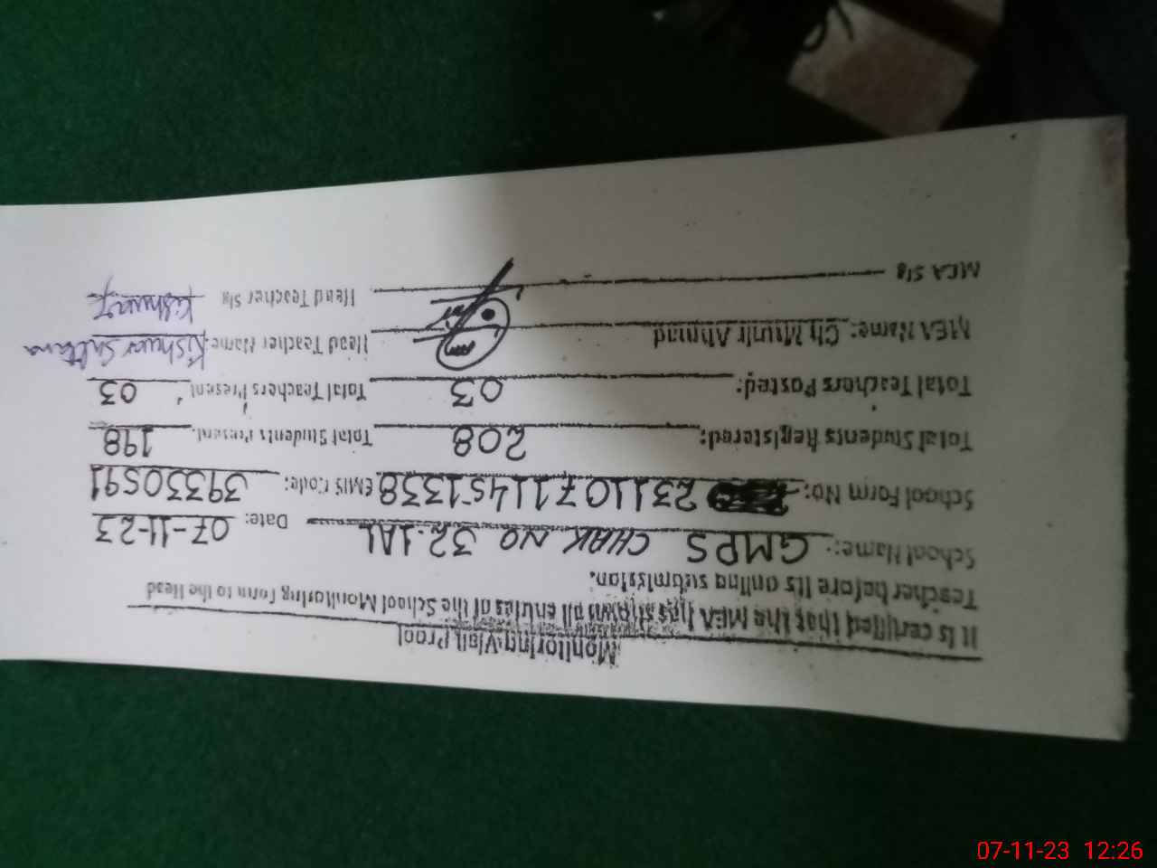 | Certified that this School was Inspected by the Undersigned MEA/DMO Today and the Information Stated Above is as Per Record. | |||||