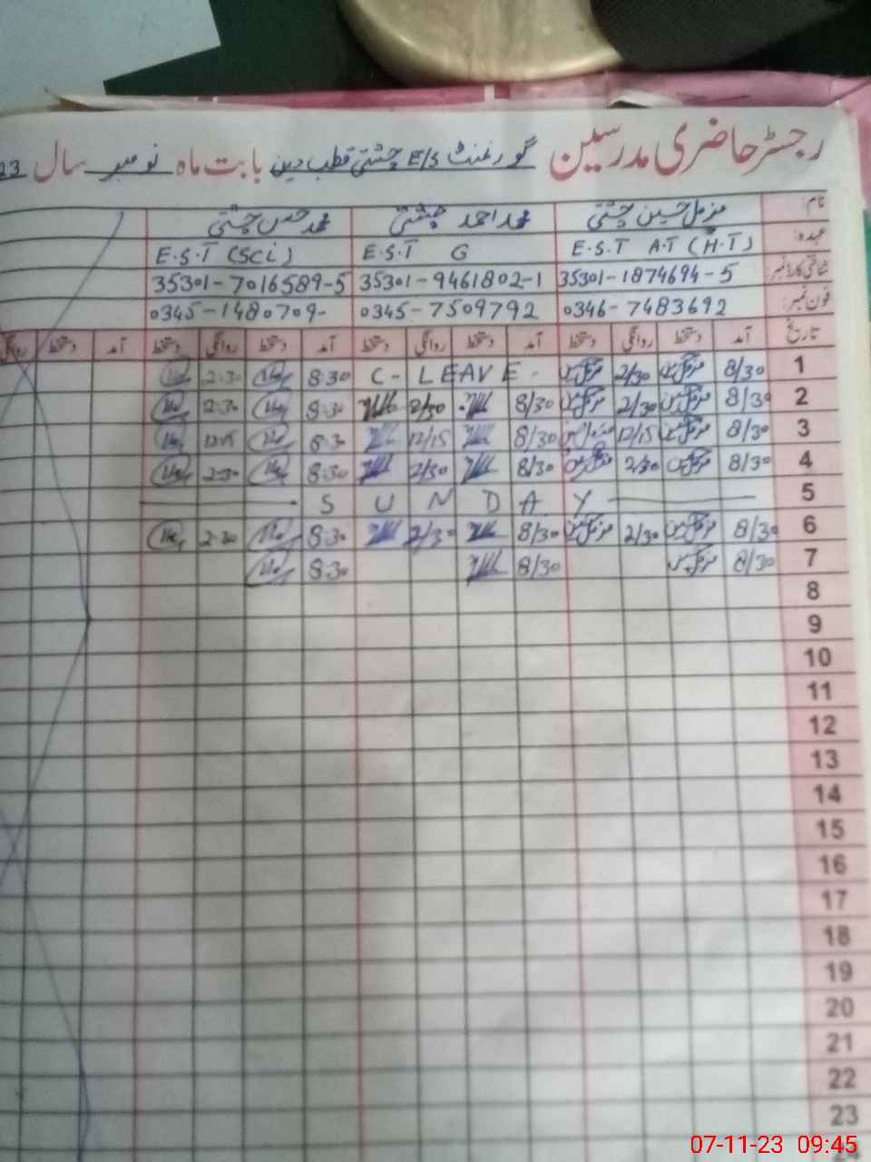 | EMIS Code: 39310074 | Name of School: GES CHISHTI QUTAB DIN | |||